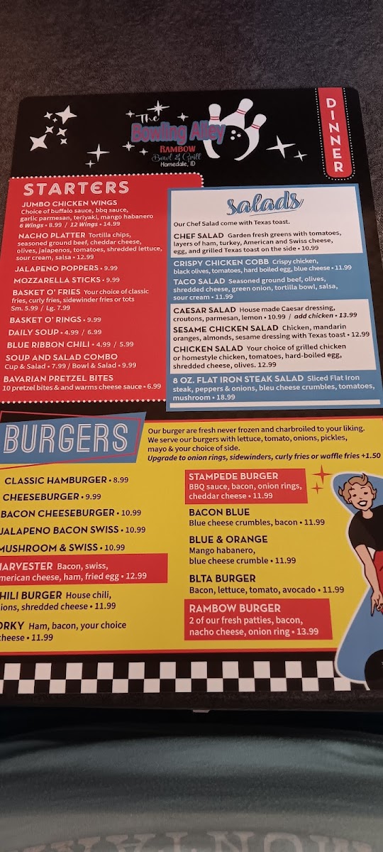 The Bowling Alley - Homedale Menu